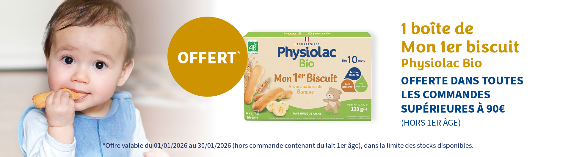 Physiolac c’est aussi des laits infantiles, des céréales Bio et des biscuits Bio.